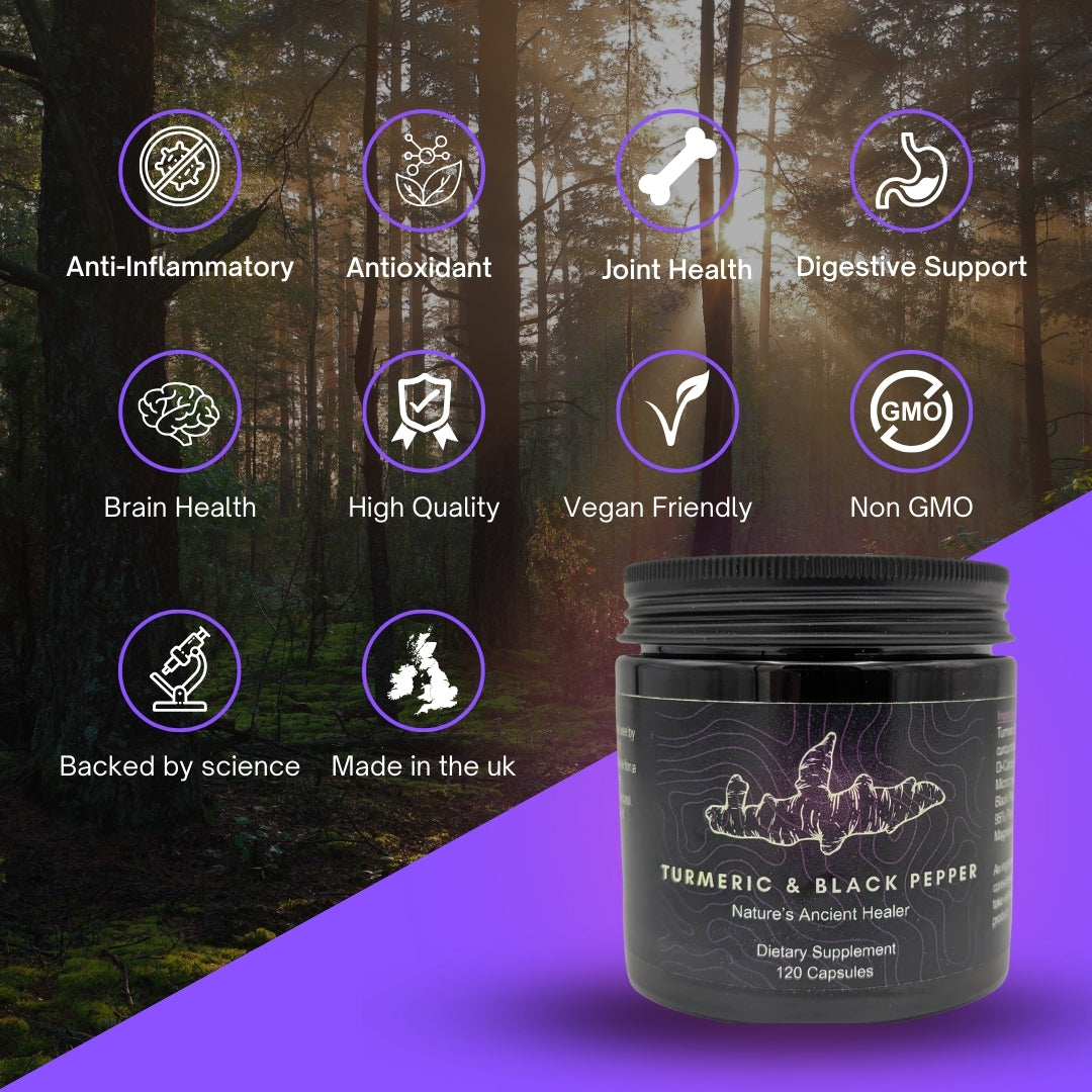 Embrace the ancient, mysterious health secrets of the East with Awaken’s Turmeric and Black Pepper supplement, a powerful combination designed to enhance wellness and vitality. Crafted in the UK, this formula integrates the time-honored healing properties of turmeric with the bioavailability-enhancing benefits of black pepper, ideal for those following a vegan lifestyle and seeking non-GMO ingredients.